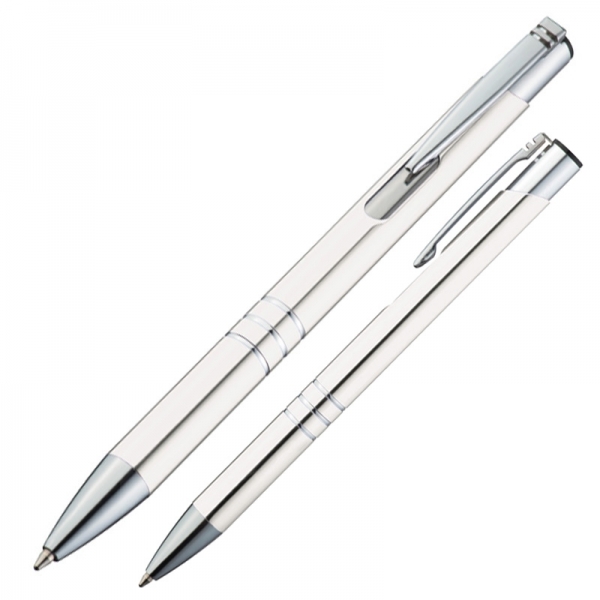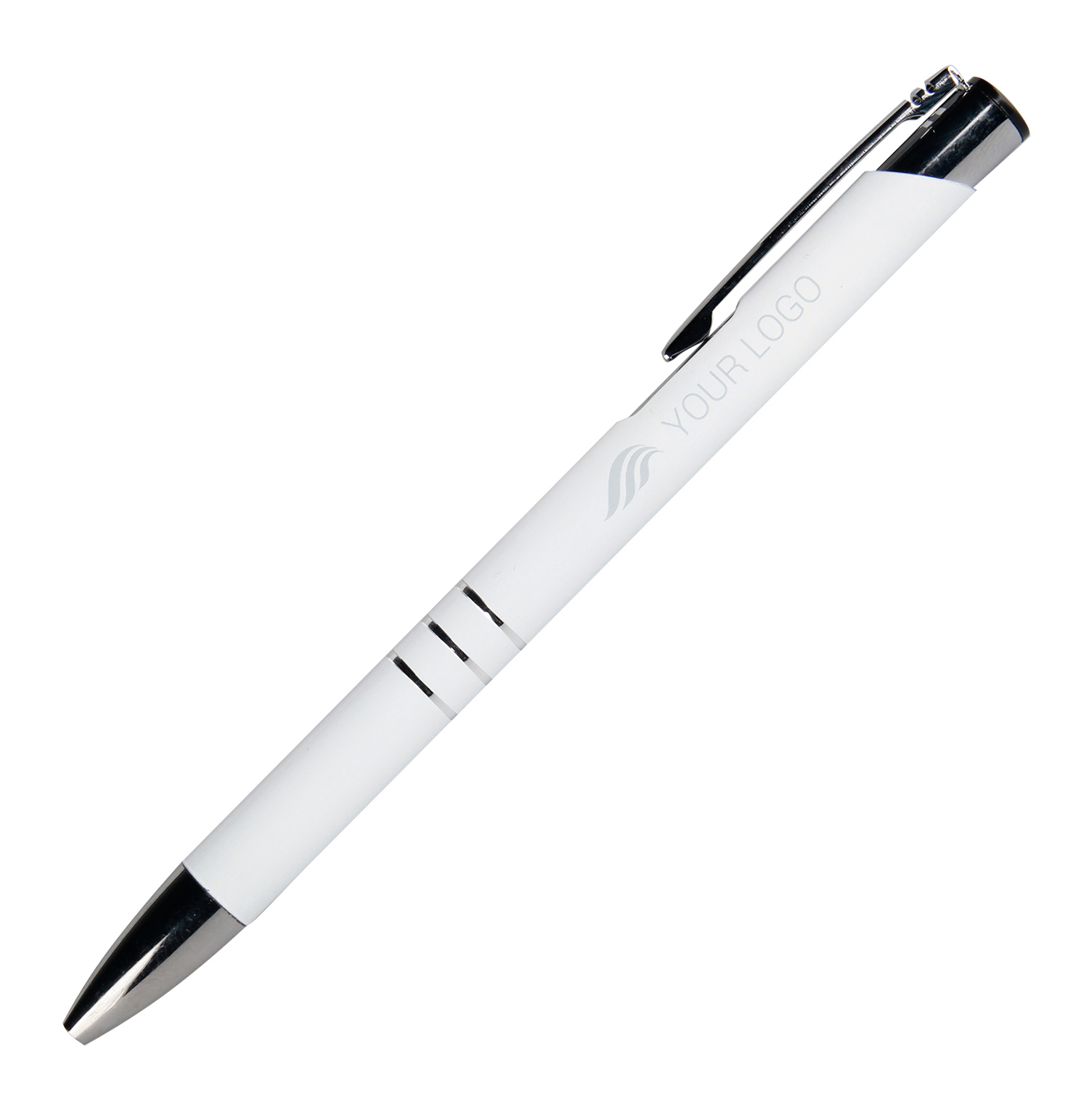 Długopis metalowy to wyjątkowy wybór dla tych, którzy cenią sprawdzone gadżety w atrakcyjnej cenie. Wykonany z aluminium, długopis ten jest dobrze wyważony w dłoni, dzięki czemu możesz nim pisać wygodnie przez dłuższy czas. Jego niebieski wkład zapewnia płynne i wyraźne pisanie, a mechanizm na "klik" gwarantuje szybkie i łatwe wysuwanie wkładu. Długopis charakteryzuje się srebrnym wykończeniem klipsu oraz trzema ringami, które elegancko dekorują jego korpus. Żywe, odblaskujące kolory dodają mu nowoczesnego wyglądu i charakteru. Powłoka długopisu umożliwia wykonanie na nim precyzyjnego grawera, dzięki czemu gadżet ten idealnie nadaje się do promowania marki. Grawer wychodzi w kolorze jasno-szarym, prawie białym, dzięki czemu jest dobrze widoczny na korpusie.