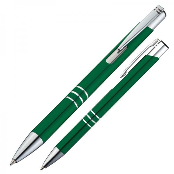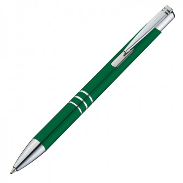 Długopis metalowy to wyjątkowy wybór dla tych, którzy cenią sprawdzone gadżety w atrakcyjnej cenie. Wykonany z aluminium, długopis ten jest dobrze wyważony w dłoni, dzięki czemu możesz nim pisać wygodnie przez dłuższy czas. Jego niebieski wkład zapewnia płynne i wyraźne pisanie, a mechanizm na "klik" gwarantuje szybkie i łatwe wysuwanie wkładu. Długopis charakteryzuje się srebrnym wykończeniem klipsu oraz trzema ringami, które elegancko dekorują jego korpus. Żywe, odblaskujące kolory dodają mu nowoczesnego wyglądu i charakteru. Powłoka długopisu umożliwia wykonanie na nim precyzyjnego grawera, dzięki czemu gadżet ten idealnie nadaje się do promowania marki. Grawer wychodzi w kolorze jasno-szarym, prawie białym, dzięki czemu jest dobrze widoczny na korpusie.
