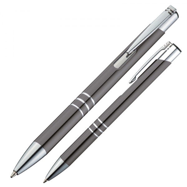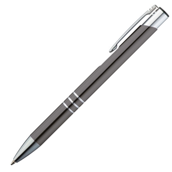 Długopis metalowy to wyjątkowy wybór dla tych, którzy cenią sprawdzone gadżety w atrakcyjnej cenie. Wykonany z aluminium, długopis ten jest dobrze wyważony w dłoni, dzięki czemu możesz nim pisać wygodnie przez dłuższy czas. Jego niebieski wkład zapewnia płynne i wyraźne pisanie, a mechanizm na "klik" gwarantuje szybkie i łatwe wysuwanie wkładu. Długopis charakteryzuje się srebrnym wykończeniem klipsu oraz trzema ringami, które elegancko dekorują jego korpus. Żywe, odblaskujące kolory dodają mu nowoczesnego wyglądu i charakteru. Powłoka długopisu umożliwia wykonanie na nim precyzyjnego grawera, dzięki czemu gadżet ten idealnie nadaje się do promowania marki. Grawer wychodzi w kolorze jasno-szarym, prawie białym, dzięki czemu jest dobrze widoczny na korpusie.