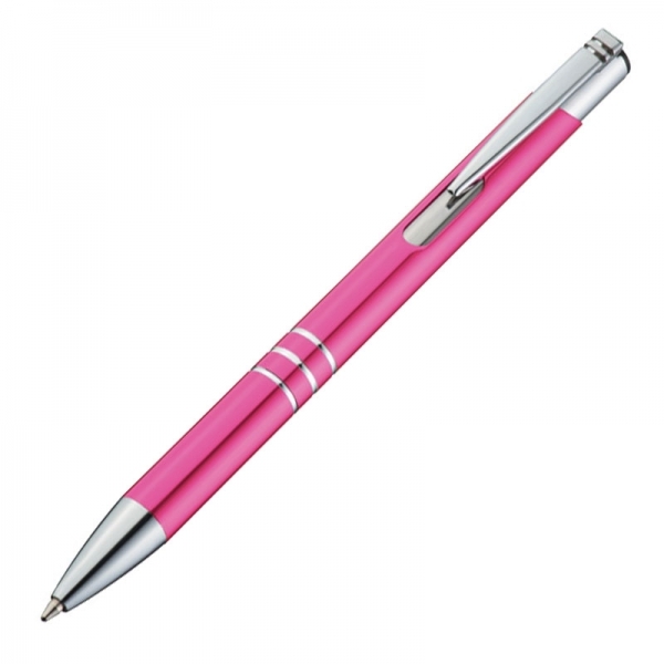 Długopis metalowy to wyjątkowy wybór dla tych, którzy cenią sprawdzone gadżety w atrakcyjnej cenie. Wykonany z aluminium, długopis ten jest dobrze wyważony w dłoni, dzięki czemu możesz nim pisać wygodnie przez dłuższy czas. Jego niebieski wkład zapewnia płynne i wyraźne pisanie, a mechanizm na "klik" gwarantuje szybkie i łatwe wysuwanie wkładu. Długopis charakteryzuje się srebrnym wykończeniem klipsu oraz trzema ringami, które elegancko dekorują jego korpus. Żywe, odblaskujące kolory dodają mu nowoczesnego wyglądu i charakteru. Powłoka długopisu umożliwia wykonanie na nim precyzyjnego grawera, dzięki czemu gadżet ten idealnie nadaje się do promowania marki. Grawer wychodzi w kolorze jasno-szarym, prawie białym, dzięki czemu jest dobrze widoczny na korpusie.