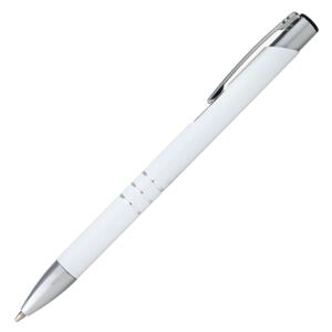 Długopis metalowy to wyjątkowy wybór dla tych, którzy cenią sprawdzone gadżety w atrakcyjnej cenie. Wykonany z aluminium, długopis ten jest dobrze wyważony w dłoni, dzięki czemu możesz nim pisać wygodnie przez dłuższy czas. Jego niebieski wkład zapewnia płynne i wyraźne pisanie, a mechanizm na `klik` gwarantuje szybkie i łatwe wysuwanie wkładu. Długopis charakteryzuje się srebrnym wykończeniem klipsu oraz trzema ringami, które elegancko dekorują jego korpus. Żywe, odblaskujące kolory dodają mu nowoczesnego wyglądu i charakteru. Powłoka długopisu umożliwia wykonanie na nim precyzyjnego grawera, dzięki czemu gadżet ten idealnie nadaje się do promowania marki. Grawer wychodzi w kolorze jasno-szarym, prawie białym, dzięki czemu jest dobrze widoczny na korpusie.
