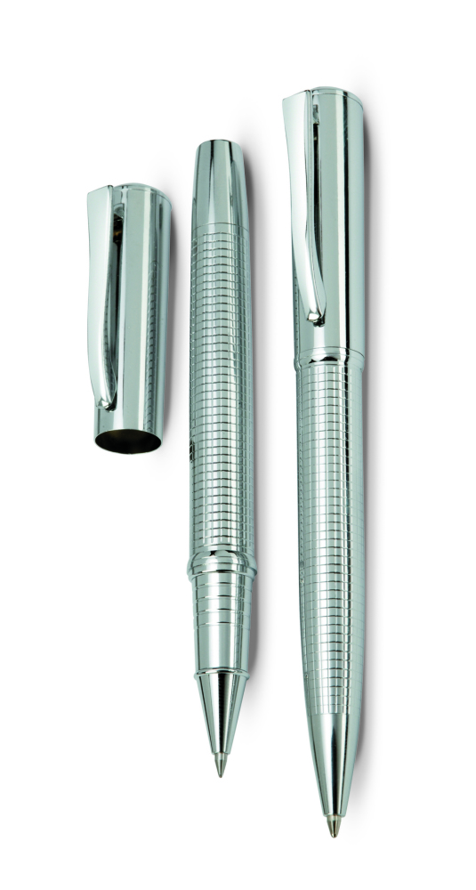 Metalowy długopis i cienkopis / Srebrny błyszczący