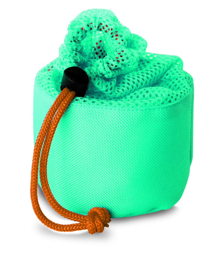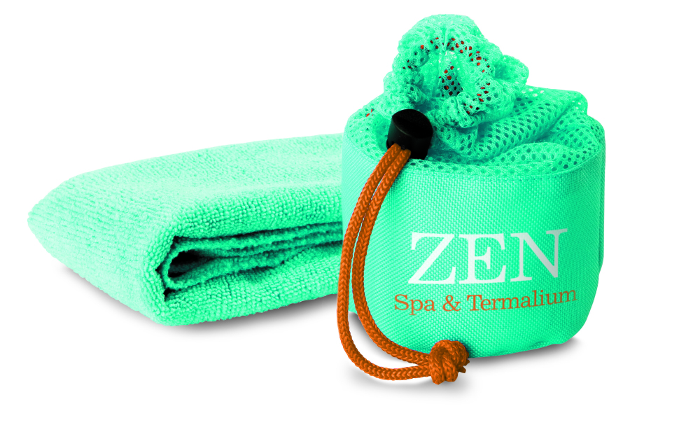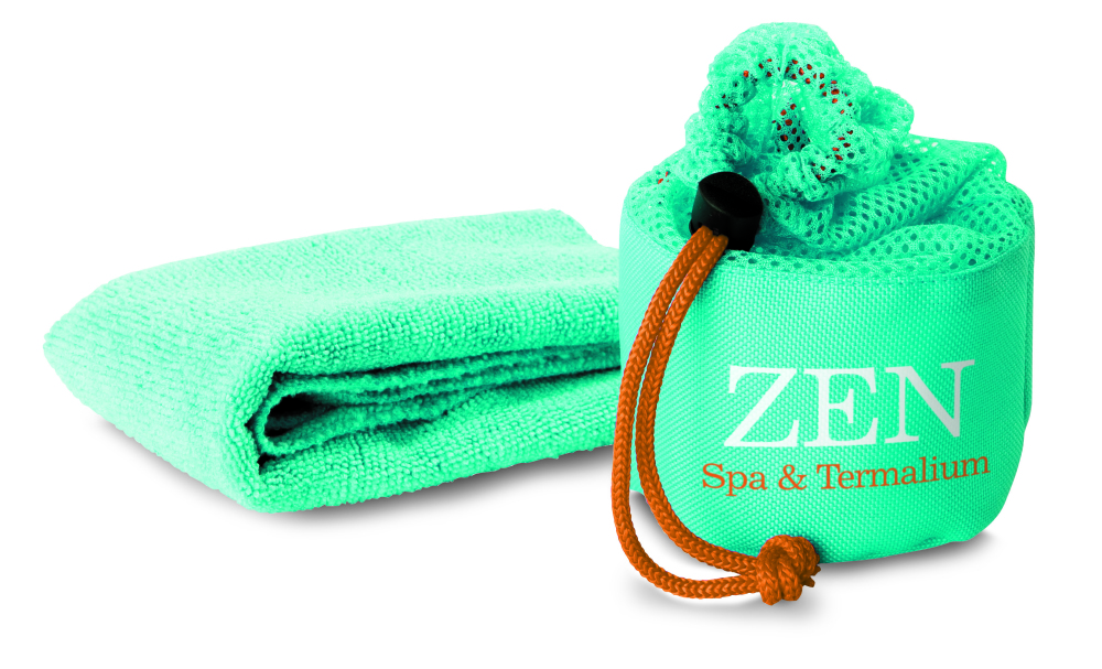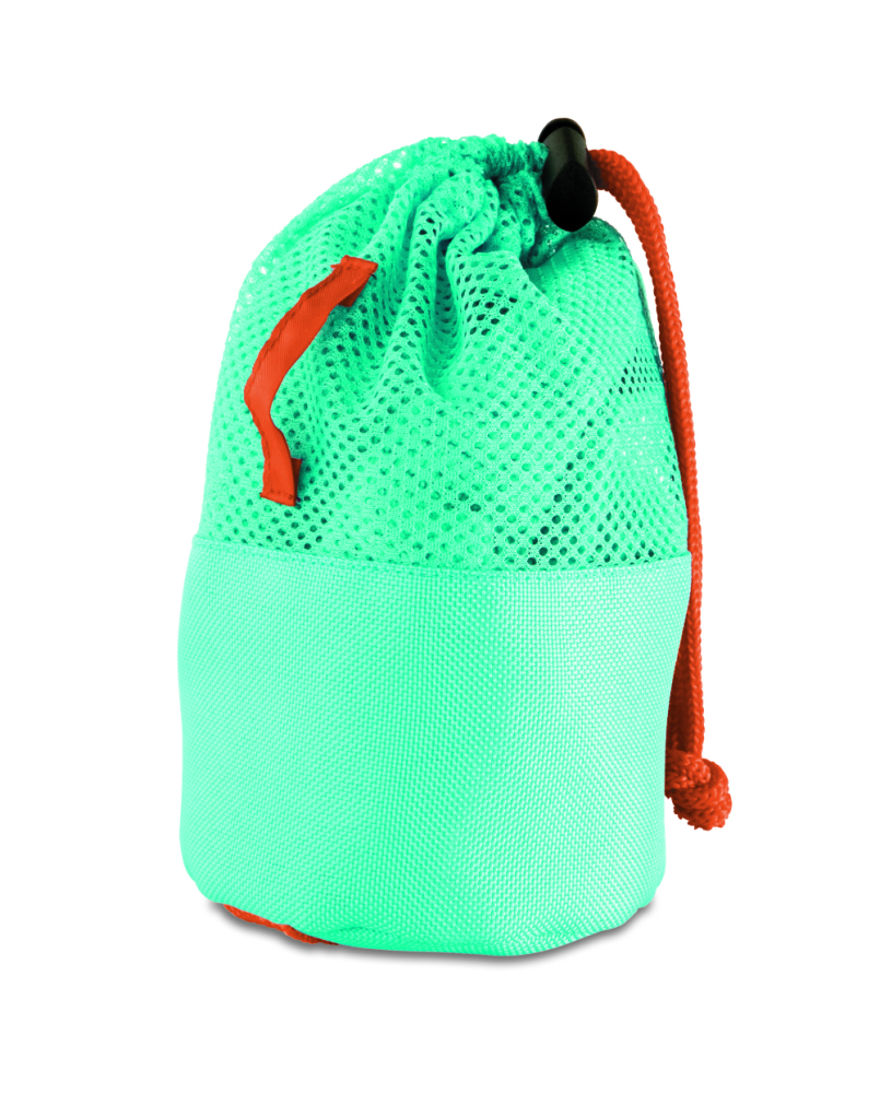 Ręcznik sportowy w pokrowcu z siateczki. Materiał: 80% poliester i 20% nylon.