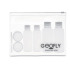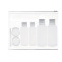 Zestaw 6 plastikowych opakowań na kosmetyki. Zaprojektowany do podróży samolotem.