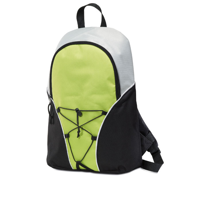 Plecak, piankowy tył i elastyczna linka z przodu - np. na butelkę. Materiał: poliester 600D.