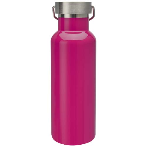 Wytrzymała butelka na wodę ze stali nierdzewnej z certyfikatem RCS i podwójnymi ściankami z izolacją próżniową, z zakręcaną pokrywką ze stali nierdzewnej i trwałym uchwytem ze stali nierdzewnej. Pojemność: 500 ml. Szczelne. Zapakowane w pudełko podarunkowe.