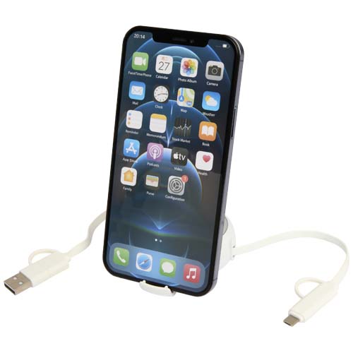 Alasia, zwijany kabel do synchronizacji danych i szybkiego ładowania 45 W 5 w 1, jest wykonany z przetworzonego plastiku z trwałym i stylowym elementem z przetworzonego aluminium, co czyni go eleganckim i bardziej przyjaznym dla środowiska akcesorium do ładowania. Kabel jest wyposażony w złącze wejściowe USB-A i Type-C w połączeniu ze złączem wyjściowym 2 w 1 Type-C oraz Lightning/Micro USB. Połączenie USB-C do USB-C zapewnia moc wyjściową maks. 45 W, USB-A do USB-C maks. 24 W, a wszystkie inne opcje połączenia maks. 15 W. Akcesorium jest kompatybilne zarówno z CarPlay, jak i Android Auto, a ponadto posiada wbudowaną podstawkę pod telefon dla większej wygody. Niezależnie od tego, czy jesteś w domu, w biurze czy w podróży, kabel Alasia zapewnia połączenie wydajności i stylu. Długość kabla: 100 cm.