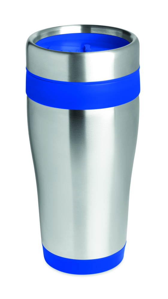 Kubek ze stali nierdzewnej, podwójne ścianki, pastikowe wnętrze, przykrywka. Pojemność: 455 ml.