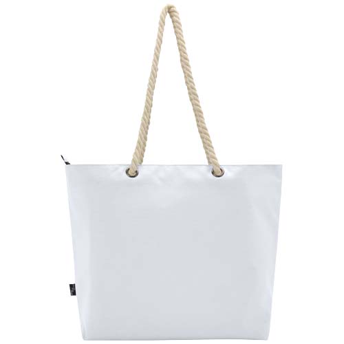Panama torba termiczna na plażę z uchwytami ze sznurka wykonana z materiałów z recyklingu z certyfikatem GRS / Biały