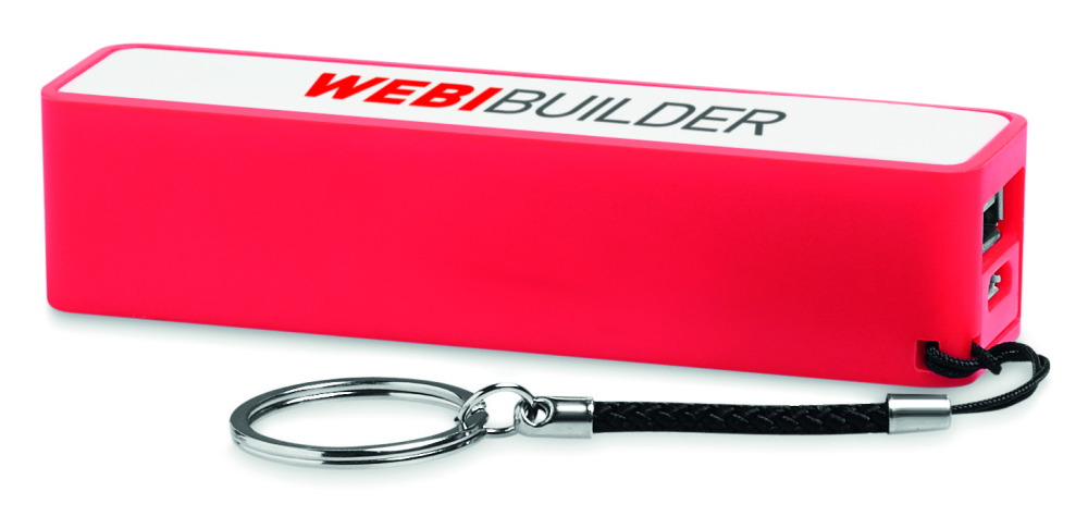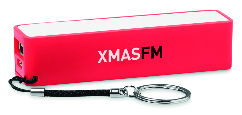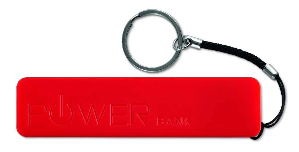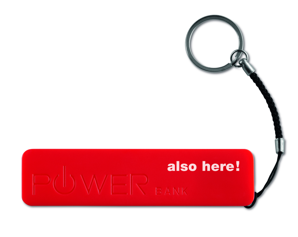 Powerbank o pojemności 2200 mAh z uchwytem na klucze. Do ładowania smartfonów. Dane prądu wyjściowego: DC5V/1A.