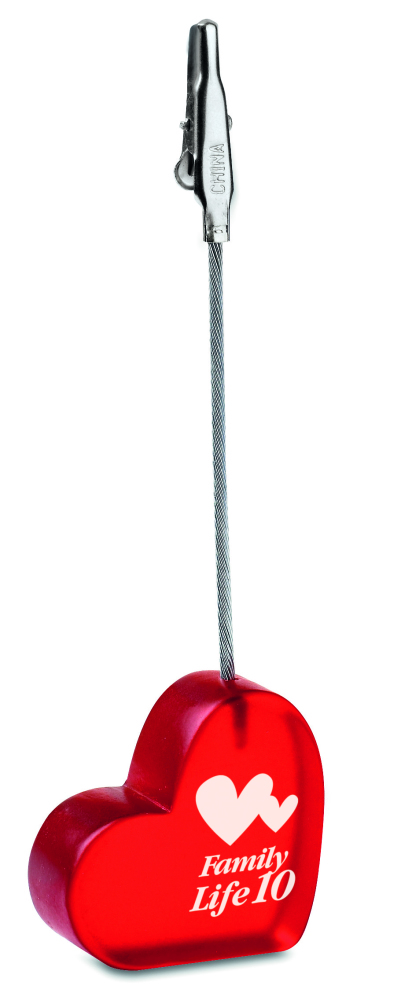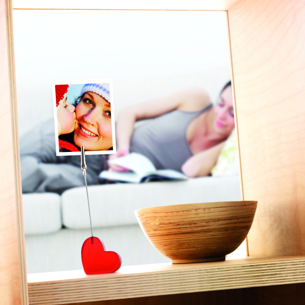 Czerwona konstrukcja w kształcie serca umożliwia obdarowanym umieszczenie tego, co najważniejsze na biurku bez obawy o to, że coś się zgubi.