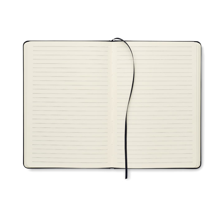 Zestaw z notesem A5 z twardą okładką 600D RPET. Z przodu elastyczna opaska na telefon i pętelka na długopis z bambusowym uchwytem. Oprawiony w etui. 160 stron w linie (80 kartek) z papieru pochodzącego z recyklingu. Elastyczny pasek zamykający. Wstążkowa zakładka. Niebieski tusz.