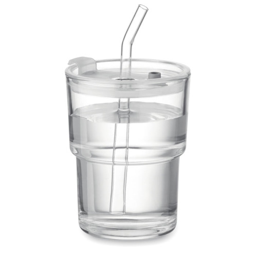 Szklany kubek ze słomką 400ml / Przezroczysty
