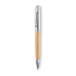 Metalowy wykręcany długopis z bambusowym wykończeniem korpusu w bambusowym pudełku z aluminiowym wieczkiem. Niebieski tusz.