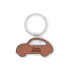 Metalowy brelok w kształcie samochodu z wkładką ze skóry PU pochodzącej z recyklingu.