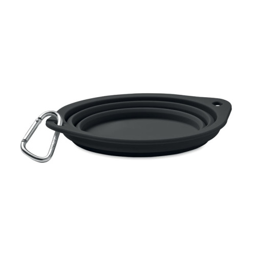 Składana, przenośna silikonowa miska na jedzenie lub picie dla zwierząt z karabińczykiem. Pojemność: 350 ml.