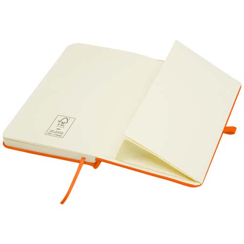 Notatnik Spectrum Plus w formacie A6 z twardą okładką i zaokrąglonymi rogami to nie tylko niezbędny element wyposażenia biura, ale także świetna okazja do promocji marki. Tekturowy notatnik ma miękką okładkę i 80 liniowanych, kremowych kartek o gramaturze 70 g/m². Jest idealny do zapisywania szybkich pomysłów lub dłuższych notatek. Notatnik jest wyposażony w szlufkę na długopis, elastyczne zamknięcie, wstążkową zakładkę i harmonijkową kieszonkę.