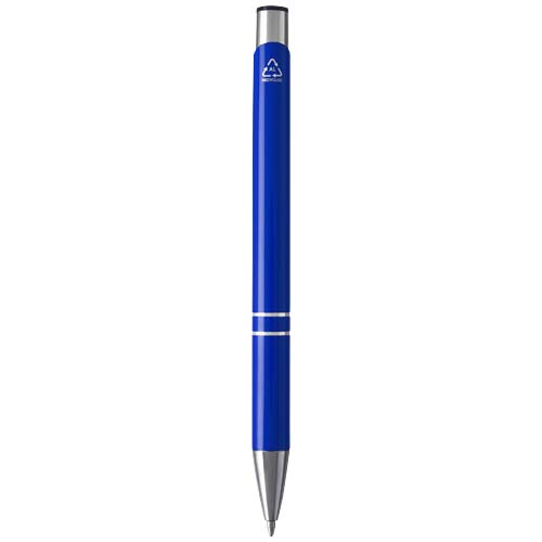Długopis wykonany z aluminium z recyklingu z lakierowanym wykończeniem, połyskiem i wyrazistymi chromowanymi detalami. Aluminium z recyklingu ogranicza ilość odpadów na wysypiskach śmieci i pomaga chronić zasoby naturalne w celu zmniejszenia emisji gazów cieplarnianych. Kolor tuszu: Niebieski. Żywotność: 1000 metrów. Rozmiar stalówki: 1,00 mm.