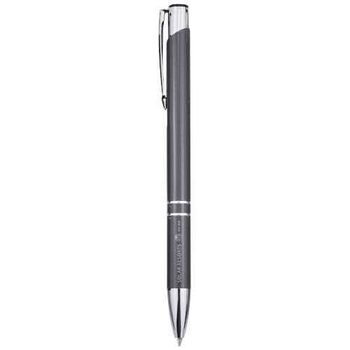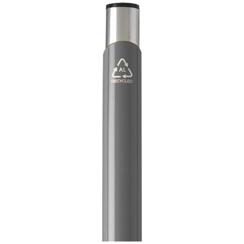 Długopis wykonany z aluminium z recyklingu z lakierowanym wykończeniem, połyskiem i wyrazistymi chromowanymi detalami. Aluminium z recyklingu ogranicza ilość odpadów na wysypiskach śmieci i pomaga chronić zasoby naturalne w celu zmniejszenia emisji gazów cieplarnianych. Kolor tuszu: Niebieski. Żywotność: 1000 metrów. Rozmiar stalówki: 1,00 mm.
