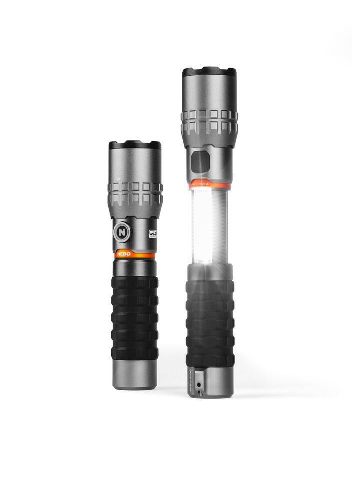 Wodoodporny (IP67) i niezwykle wszechstronny model NEBO® Slyde King 2K z kolekcji Promo Range, został wyposażony w światło o mocy 2000 lumenów z 4-krotnym zoomem oraz światło robocze C•O•B 500 lumenów. Każdy tryb światła jest ściemniany z funkcją programowania. 2K ma również ergonomiczny gumowany uchwyt i mocną podstawę magnetyczną. Latarka posiada akumulator w wejściem USB-C. Cechy produktu: Akumulator z wejściem USB-C Funkcja technologii OCTM Obudowa z anodowanego aluminium lotniczego Odporna na upadki i wodę (IP67) Pamięć ustawienia mocy światła Wskaźnik ładowania baterii Wskaźnik zasilania Zoom 4x Światło czerwone i robocze wewnątrz korpusu latarki Magnetyczna podstawa Źródło światła: Wysoki (2000 lumenów): 2 h, 409 m Światło robocze COB (500 lumenów): 4 h, 34 m Czerwone światło (40 lumenów): 6 h, 9 m Czerwone światło awaryjne (40 lumenów): 6 h, 9 m NEBO® to amerykańska marka – jeden z największych na świecie dostawców zaawansowanych technologicznie produktów LED. Wodoodporne latarki zostały opatentowane i zaopatrzone w innowacyjną technologię LED COB.
