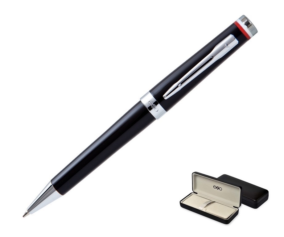 Elegancki długopis Flaga Polska, polskiej marki exo, posiada korpus pokryty czarnym błyszczącym lakierem oraz chromowane wykończenia. Logo marki zostało umieszczone na klipsie i na ringu poniżej. Przekręcany mechanizm włączający. Charakterystycznym elementem produktu jest motyw z barwami polskiej flagi, który znajduje się na ringu skuwki. Długopis zaopatrzono we wkład z niebieskim tuszem. Każdy długopis został zapakowany w oryginalne etui Premium. exo® to autorska marka zespołu polskich ekspertów na rynku upominków. Powstała z myślą o klientach poszukujących innowacyjnych rozwiązań, a zarazem przedmiotów o najwyższej jakości. Artykuły piśmiennicze zostały stworzone tak, aby kompozycja kolorów, klasa produktu i metody zdobienia zaspokajały nawet najbardziej wymagające gusta.