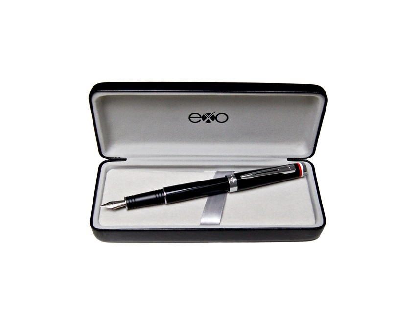 Eleganckie pióro wieczne Flaga Polska, polskiej marki exo, posiada korpus pokryty czarnym błyszczącym lakierem oraz chromowane wykończenia. Logo marki zostało umieszczone na klipsie i na ringu poniżej. Charakterystycznym elementem produktu jest motyw z barwami polskiej flagi, który znajduje się na ringu skuwki. Pióro zaopatrzono w tłoczek i 2 naboje z niebieskim atramentem. Każde pióro zostało zapakowane w oryginalne etui Premium. exo® to autorska marka zespołu polskich ekspertów na rynku upominków. Powstała z myślą o klientach poszukujących innowacyjnych rozwiązań, a zarazem przedmiotów o najwyższej jakości. Artykuły piśmiennicze zostały stworzone tak, aby kompozycja kolorów, klasa produktu i metody zdobienia zaspokajały nawet najbardziej wymagające gusta.