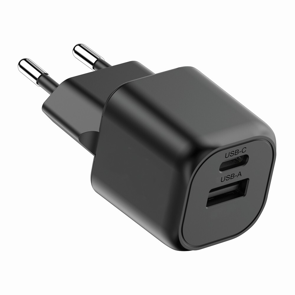 Ładowarka ścienna, moc całkowita do 20W, wyjścia USB-C i USB, wykonana z materiałów z recyklingu, całkowita zawartość materiałów z recyklingu obliczona na podstawie wagi całkowitej produktu: 38%