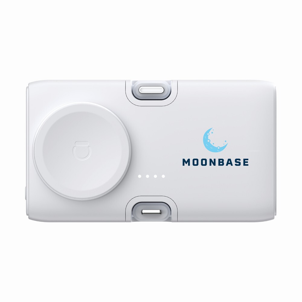 Power bank 5000 mAh, zintegrowana ładowarka bezprzewodowa do zegarka (tylko iOS), szybkie ładowanie do 20W, zintegrowane wyjścia USB-C i iOS, stojak na telefon, wyjście USB-C, działa z urządzeniami posiadającymi możliwość ładowania indukcyjnego, wykonana z ABS z recyklingu, całkowita zawartość materiałów z recyklingu obliczona na podstawie wagi całkowitej produktu: 24%