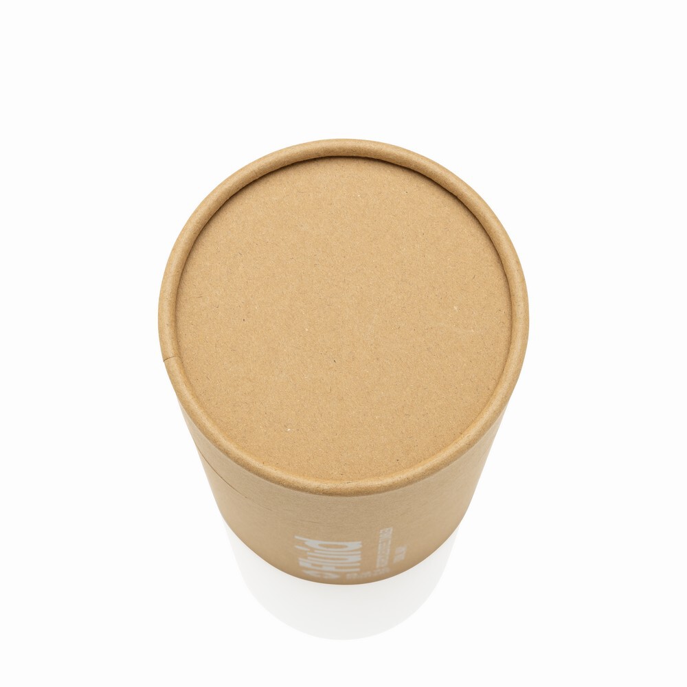 Kubek termiczny 500 ml, wykonany z materiałów z recyklingu z certyfikatem RCS, podwójne ścianki z próżnią pomiędzy, utrzymuje temperaturę napojów ciepłych do 5 godzin i zimnych do 15 godzin, wyłącznie mycie ręczne, całkowita zawartość materiałów z recyklingu obliczona na podstawie wagi całkowitej produktu: 81%