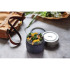 Pudełko śniadaniowe 750 ml wykonane ze szkła, podstawa pojemnika wykonana jest z polipropylenu połączonego z włóknem drzewnym, co zapewnia ochronę szklanej miski i ułatwia trzymanie po podgrzaniu, można myć w zmywarce