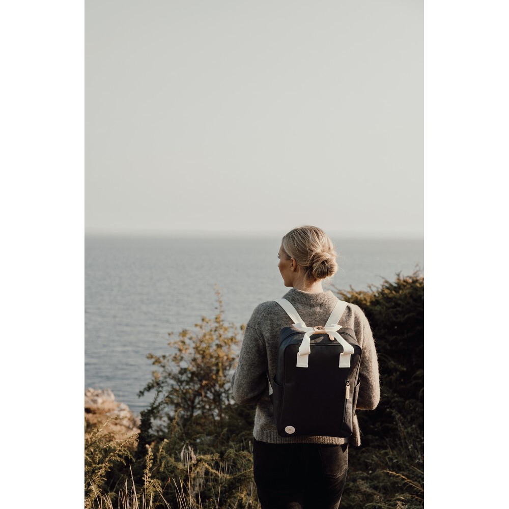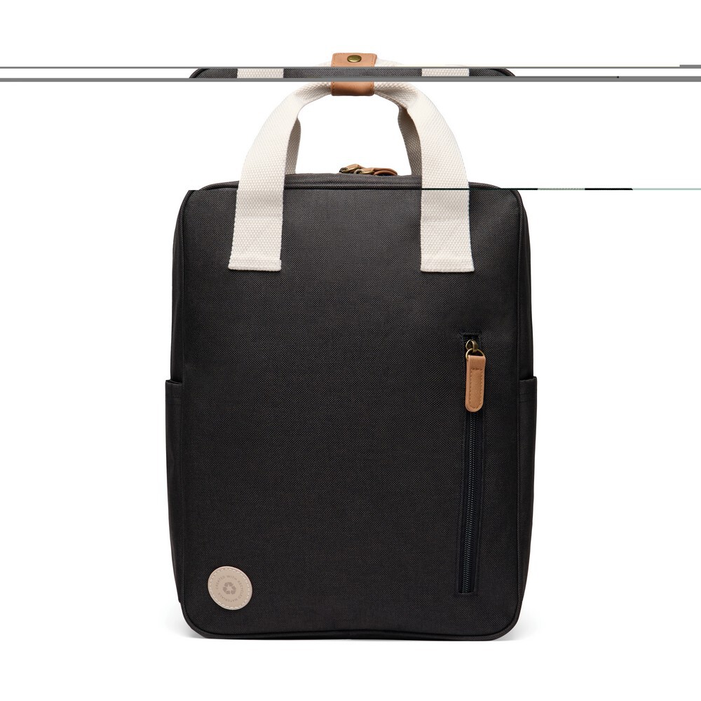 Plecak na laptopa, wykonany z poliestru z recyklingu z certyfikatem RCS, przestronna przegroda główna z kieszenią wewnątrz, dwie otwarte kieszenie na zewnątrz, pasek do zamocowania na walizce, miękkie, regulowane paski na ramiona, całkowita zawartość materiałów z recyklingu obliczona w oparciu o wagę całkowitą przedmiotu: 20%