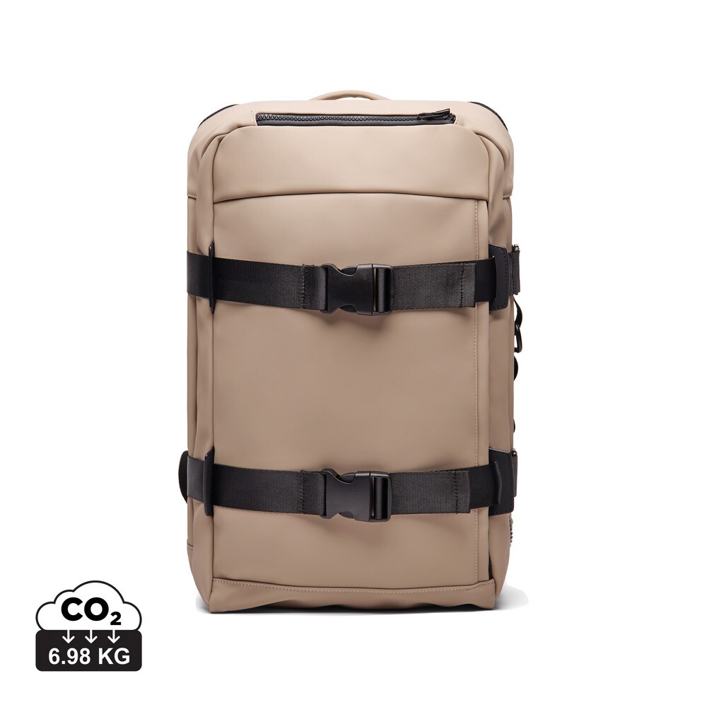 Plecak na laptopa, wykonany z poliestru z recyklingu z certyfikatem RCS, wykończenie z PU, przestronna przegroda główna, dwie kieszenie na zewnątrz, pasek do zamocowania na walizce, miękkie, regulowane paski na ramiona, całkowita zawartość materiałów z recyklingu obliczona w oparciu o wagę całkowitą przedmiotu: 16%