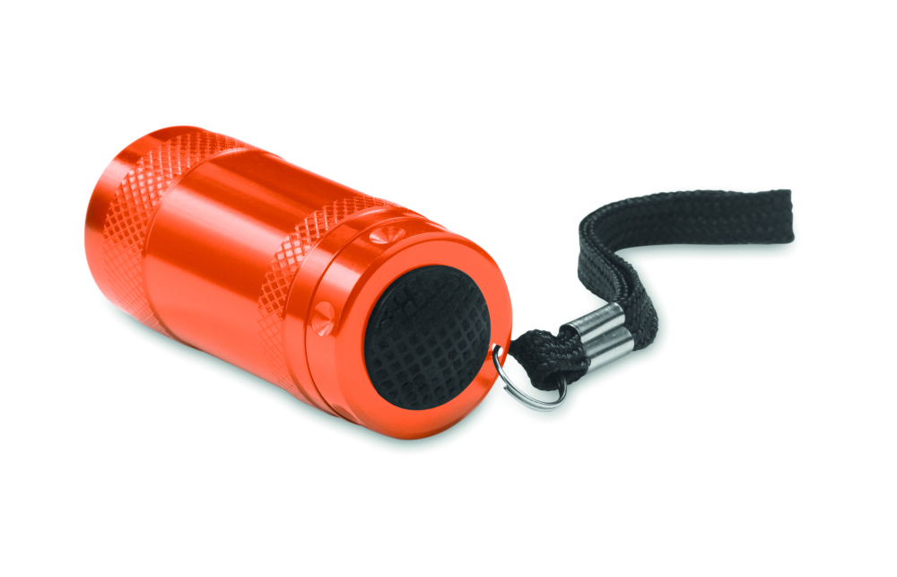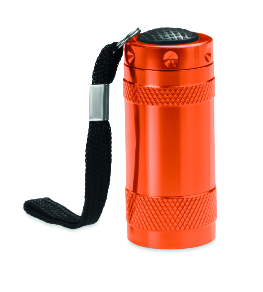 Aluminowa mini latarka 6 LED z zawieszką na rękę. 2 baterie dołączone.