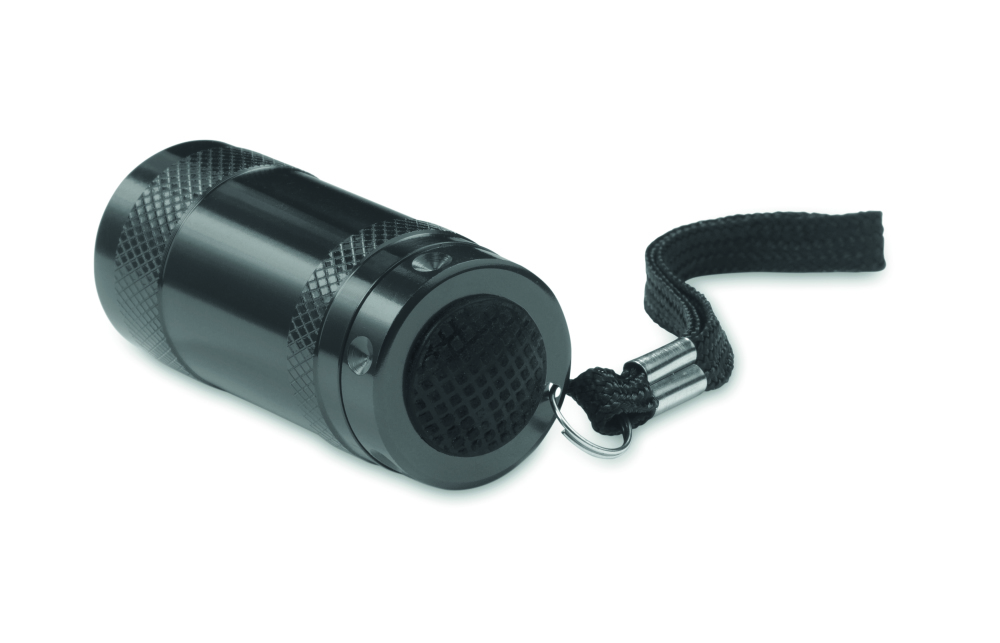 Aluminowa mini latarka 6 LED z zawieszką na rękę. 2 baterie dołączone.