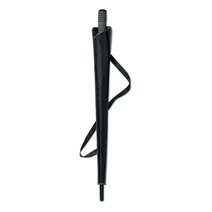 Automatycznie otwierany parasol 23 cale. Polyester 190T, trzon, żebra i końcówki ocynkowane. Czarny, gumowany szpic. Panele wykończone szarą lamówką.Prosta rączka z materiału EVA z wykończeniem w kolorze poszycia. Dobrane kolorystycznie etui.
