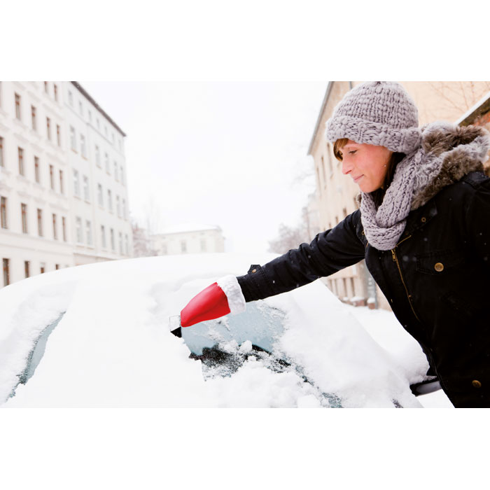 Skrobaczka do szyb z rękawicą / Czerwony