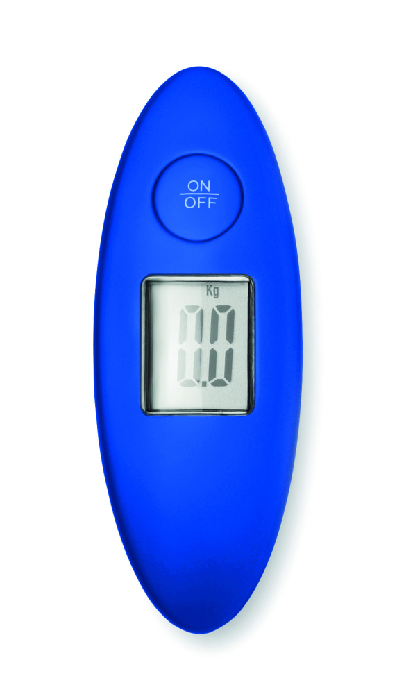 Waga do bagażu w obudowie ABS. Max ciężar 40 kg. Urządzenie podaje wagę w kg lub funtach. Zasilana 1 bateria pastylkową (dołączona). Indywidualnie pakowana w srebrne kartonowe pudełko.