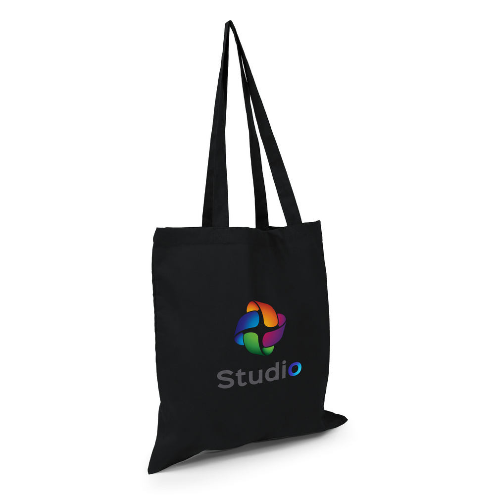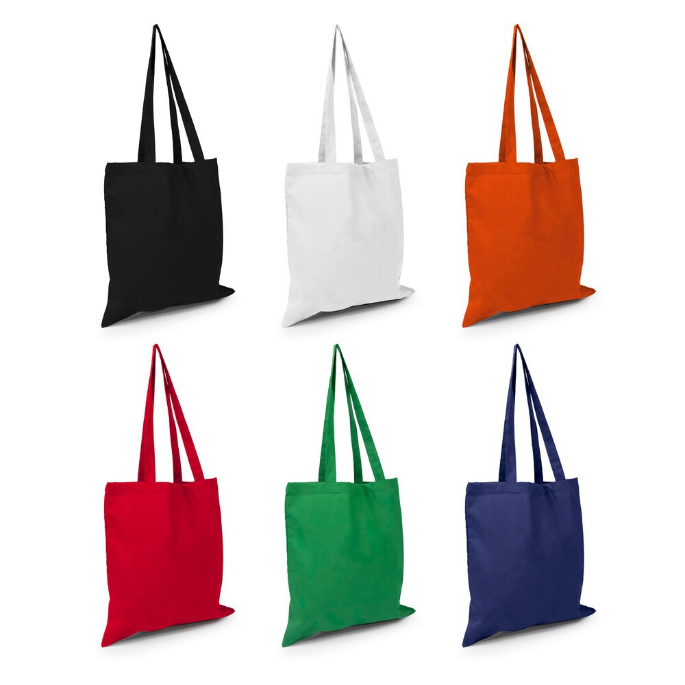 Torba na zakupy, posiada długie uchwyty umożliwiające noszenie na ramieniu, produkt wykonany z bawełny o gramaturze 180 g/m2
