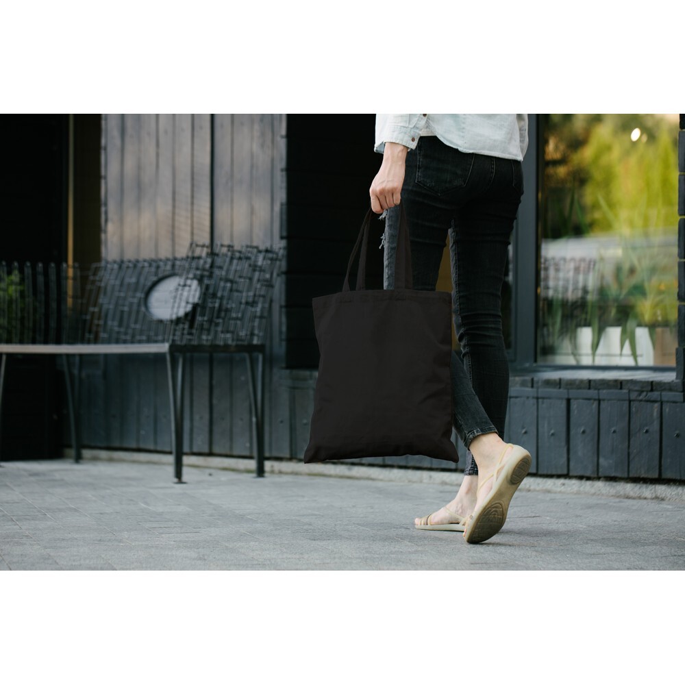 Torba na zakupy z szerokim dnem, posiada długie uchwyty umożliwiające noszenie na ramieniu, produkt wykonany z bawełny o gramaturze 240 g/m2