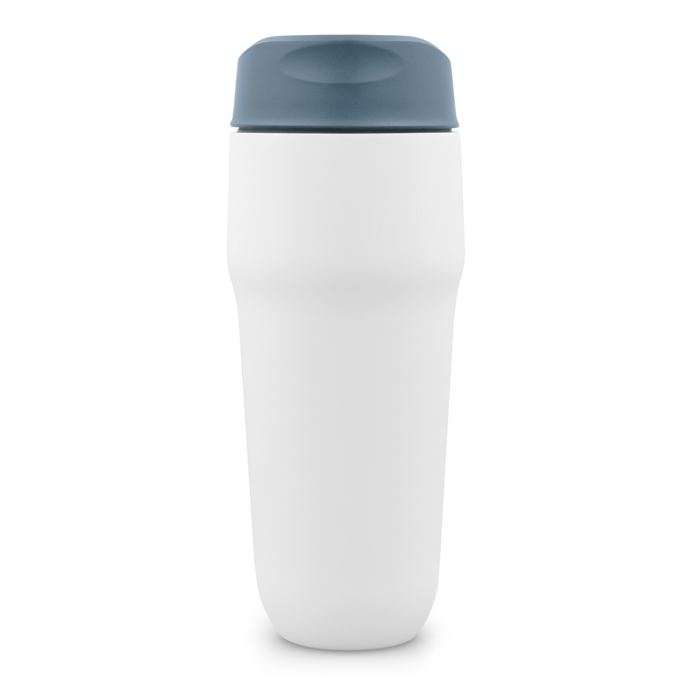 Kubek termiczny 400 ml Air Gifts, posiada podwójne ścianki ze stali nierdzewnej i ceramiki z próżnią między ściankami, co spowalnia oddawanie temperatury na zewnątrz, zachowując funkcje termosu, plastikowe wieczko z przyciskiem otwarcia/zamknięcia ustnika umożliwiającym obsługę jedną ręką, wieczko może zostać rozkręcone w celu ułatwienia czyszczenia, matowe wykończenie, produkt wykonany ze stali nierdzewnej, ceramiki i plastiku, klasa termiczna: B +leakproof