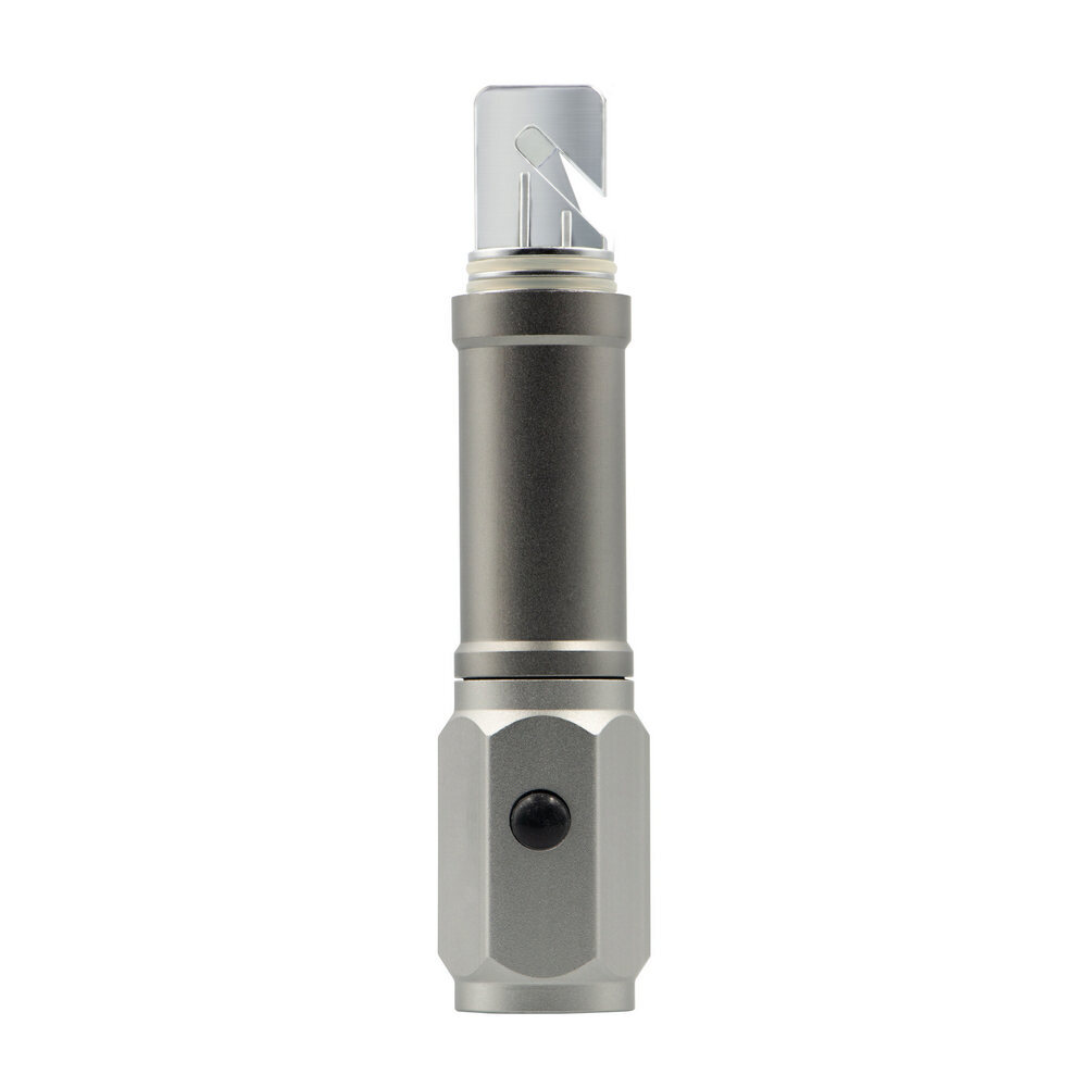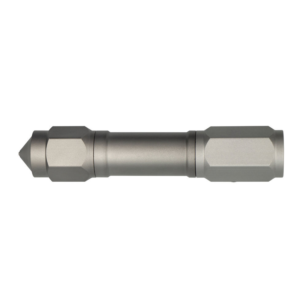 Latarka bezpieczeństwa o mocy 60 lumenów, posiada młotek bezpieczeństwa oraz przecinak do pasów bezpieczeństwa, produkt wykonany z aluminium