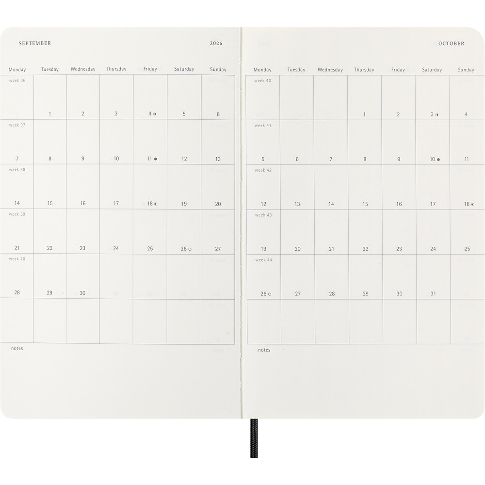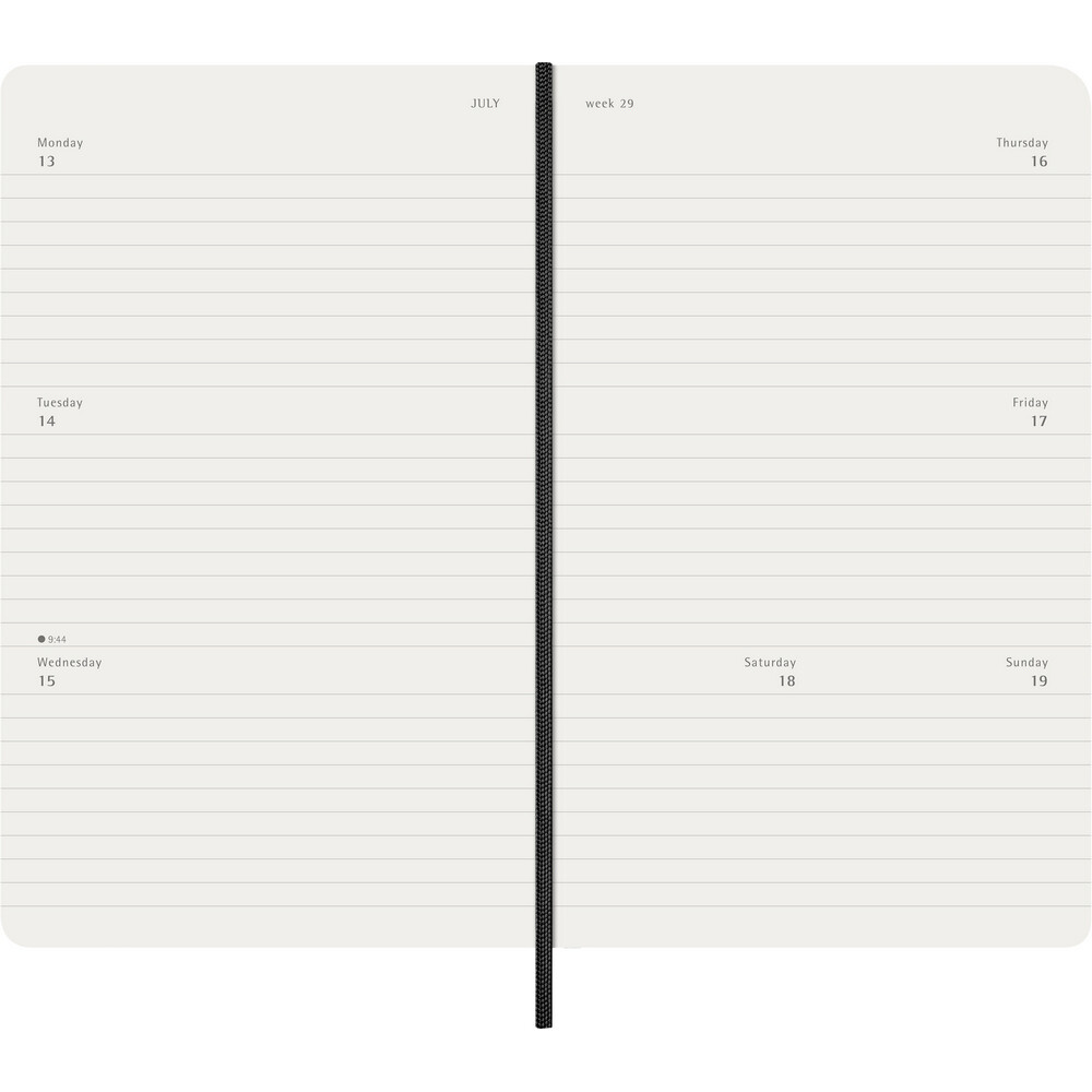 Kalendarz duży (ok. A5, large) MOLESKINE, miękka okładka, tygodniowy, horyzontalny (144 str.), zakładka i elastyczna opaska do zamykania