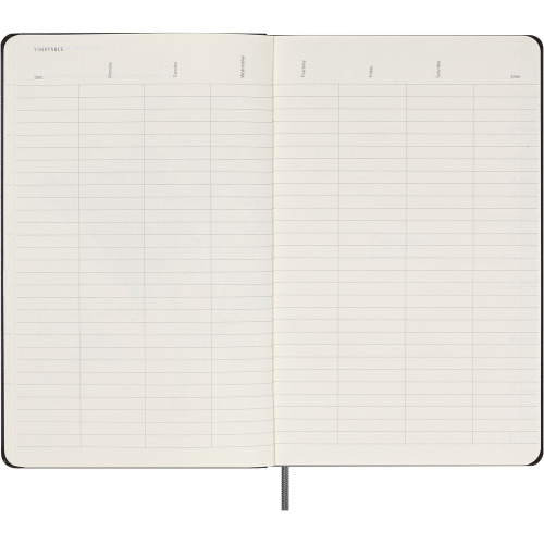 Spiralny kalendarz XL (ok. A5) MOLESKINE UNDATED, 12 konfigurowalnych podziałów na miesiące, 5 niedatowanych tygodni na miesiąc, twarda okładka, układ tygodniowy (208 str.), zakładka i elastyczna opaska do zamykania