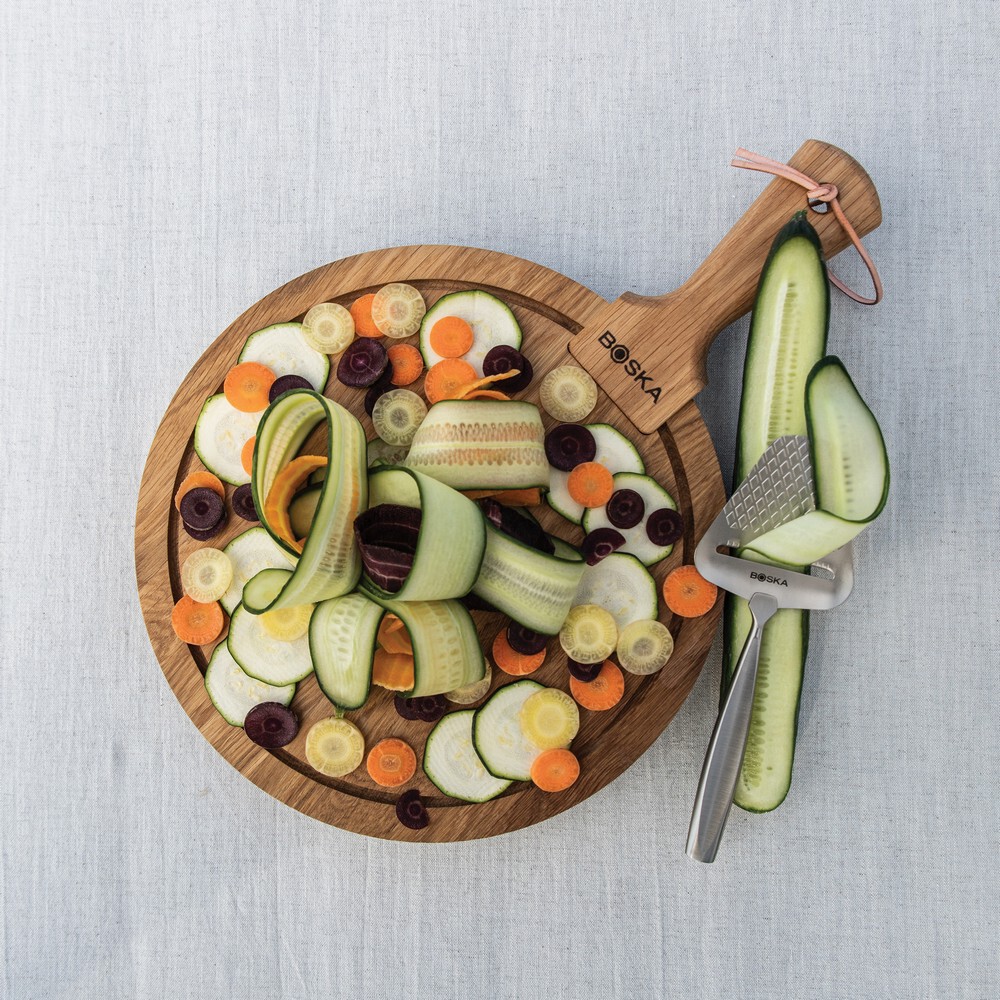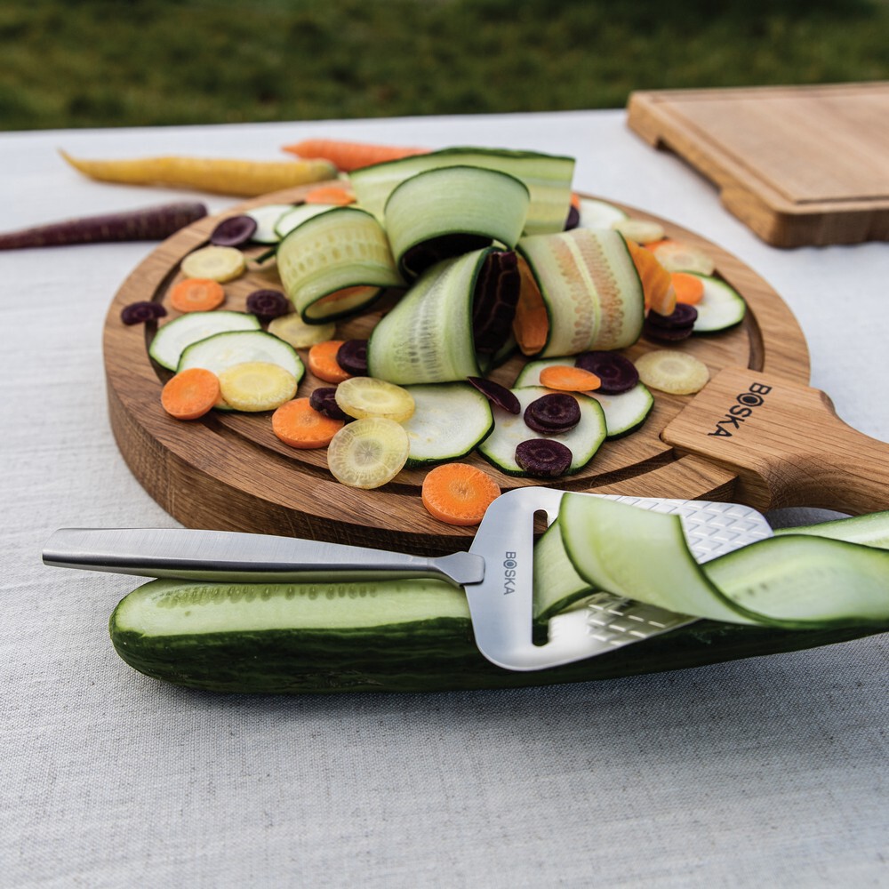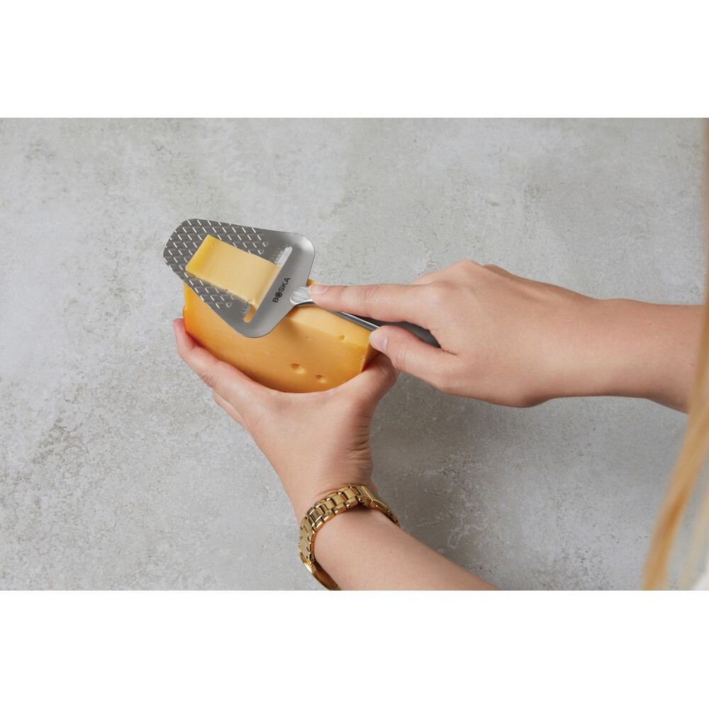 Nóż do sera, wykonany ze stali nierdzewnej, posiada unikatowy wzór w kształcie diamentów, który zapobiega przywieraniu sera, nagrodzona prestiżową Red Dot Design Award, nadaje się do mycia w zmywarce