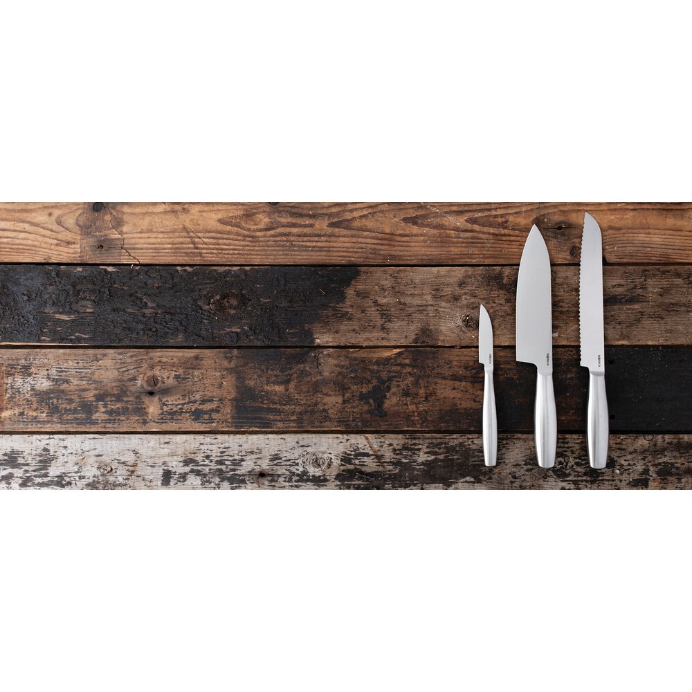Zestaw noży kuchennych, wykonany ze stali nierdzewnej, ergonomiczne uchwyty zaprojektowane z myślą o różnych technikach krojenia, wyłącznie mycie ręczne, posiada dożywotnią gwarancję