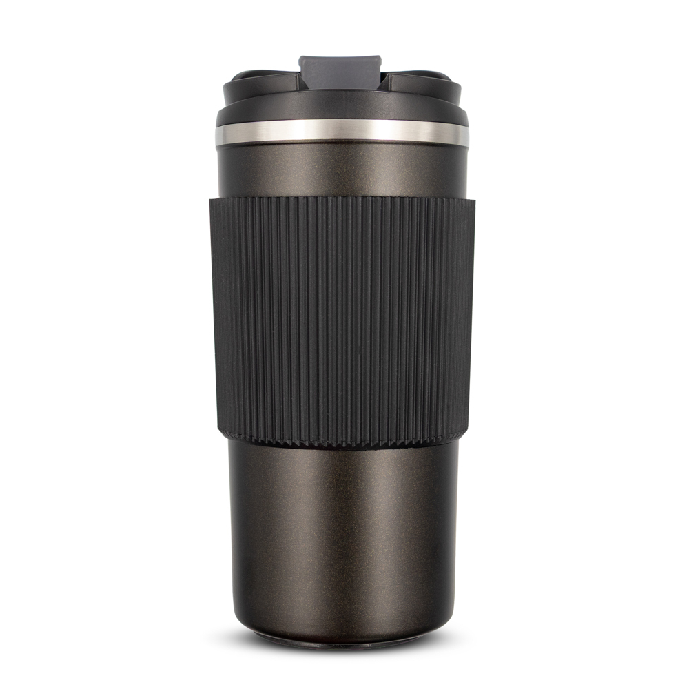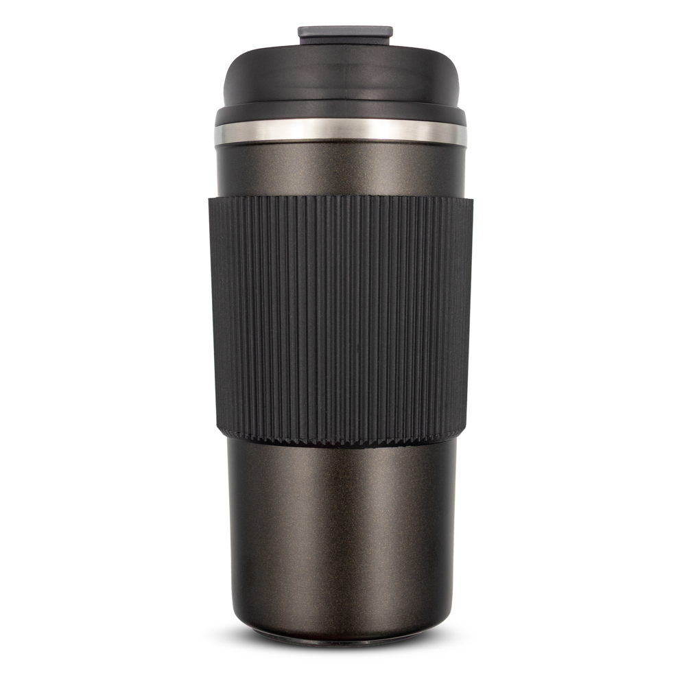 Zestaw upominkowy, w zestawie kubek termiczny 470 ml, posiada podwójne ścianki, które spowalniają oddawanie temperatury na zewnątrz, silikonowy uchwyt zwiększający wygodę użytkowania, notatnik w formacie ok. A5 z miękką okładką, posiada 100 kartek w linie oraz tasiemkę zakładkową ze specjalną metalową płytką pod znakowanie, tasiemka zakładkowa umożliwia wygodne zaznaczanie ostatniej strony lub ważniejszych notatek, pióro kulkowe posiada wkład w niebieskim kolorze, czarne pudełko podarunkowe w komplecie, produkt wykonany z między innymi aluminium, stali nierdzewnej, PU oraz PP