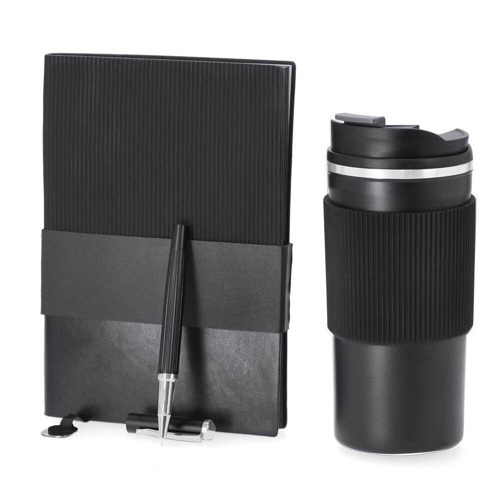 Zestaw upominkowy, kubek termiczny 470 ml, notatnik A5, pióro kulkowe, pudełko podarunkowe / Czarny