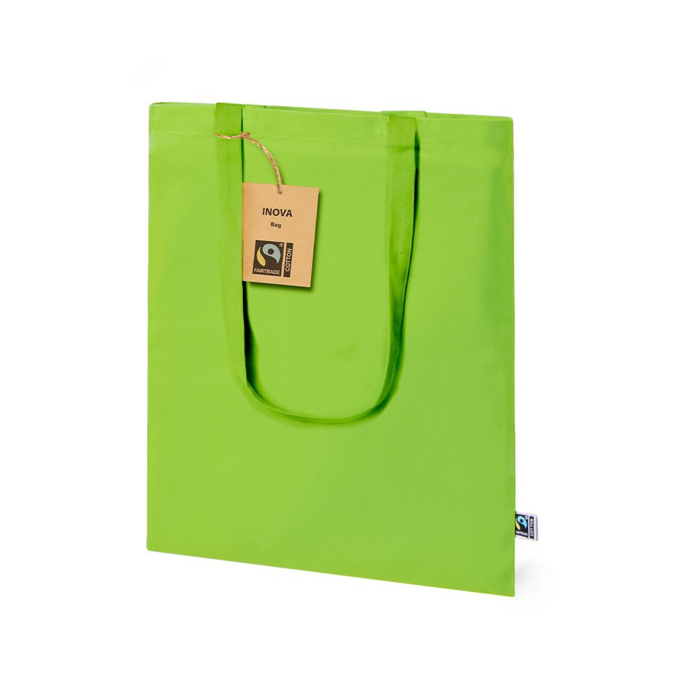 Torba na zakupy, posiada długie uchwyty umożliwiające noszenie na ramieniu, produkt wykonany z bawełny o gramaturze 180 g/m², zgodny z certyfikatem FAIRTRADE