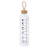 Butelka 1000 ml z bambusową zakrętką i uchwytem ułatwiającym noszenie, posiada silikonowy pokrowiec, produkt wykonany ze szkła