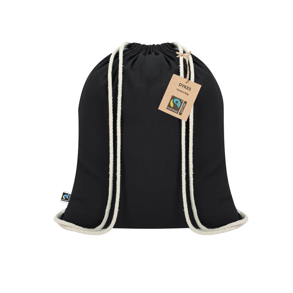 Worek ze sznurkiem umożliwiającym noszenie na plecach, pomieści drobne zakupy lub strój sportowy na siłownię, produkt wykonany z bawełny o gramaturze 140 g/m², zgodny z certyfikatem FAIRTRADE